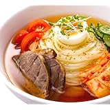 盛岡冷麺の美味しい【お召し上がり方】 沸騰したたっぷりのお湯(麺1食あたり約2リットル以上)に麺をほぐしながら入れ、お好みの固さ(固め1分、柔らかめ2~3分)にゆでます。 冷水でよく洗い、水をよく切り、器に盛ります。 特製のスープを水を約5倍(約180cc)にうすめ、麺にかけてお召し上がり下さい。酢を少し加えますと、さっぱりとした味わいになります。 具として白菜キムチやカクテキキムチ、チャーシューや焼肉、ゆで卵、野菜(きゅうり、かいわれ大根)と果物(スイカ、りんご、梨)を加えますとより一層美味しいです。魚介類(えび、いか等)もよくあいます。 盛岡冷麺に果物が入っているのは、辛いものを食べた後の口の中の辛味を果物の糖分が消してくれるからですよ。