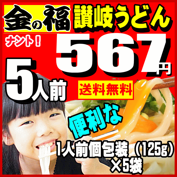 今だけ価格【送料無料】便利な1人前個包装タイプ(5人前セット)完熟金の福讃岐うどん5人前 半生讃岐うどんセットメール便【さぬきうどん】香川【RCP】 価格:567円 |